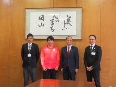 東京2025デフリンピック陸上競技走り高跳びで5位に入賞した佐藤秀祐選手と関係者が、大森雅夫岡山市長を表敬訪問しました。