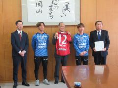 ファジアーノ岡山の森井悠代表取締役社長及び選手2名が、J1百年構想リーグの開幕にあたり、大森雅夫岡山市長を表敬訪問しました。