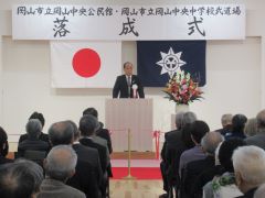 岡山市立岡山中央公民館・岡山市立岡山中央中学校武道場の完成を記念して、落成式が開催され、大森雅夫岡山市長が出席しました。