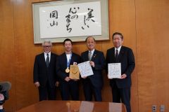エンジョイ!剣道フェスティバル2026に出場する南輝剣道スポーツ少年団の清水結月選手と関係者が、大森雅夫岡山市長を表敬訪問しました。