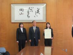 令和7年度 企業誘致活動用グッズデザイン・動画コンテスト表彰式が開催され、大森雅夫岡山市長が出席しました。