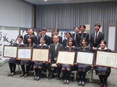 「第20回全国高校生<書道>S-1グランプリ」でグランプリに輝いた明誠学院高等学校書道部が、大森雅夫岡山市長を表敬訪問しました。