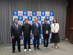 ミラノ・コルティナ2026冬季オリンピックスノーボード競技男子ビッグエアで金メダルを獲得した木村葵来選手の偉業を讃え、大森雅夫岡山市長から「特別スポーツ栄誉賞」を授与しました。
