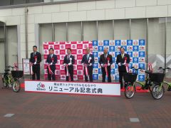 岡山市シェアサイクル「ももちゃり」のリニューアル記念式典が開催され、大森雅夫岡山市長が出席しました。