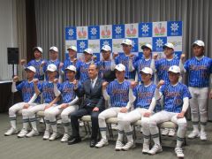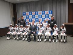 「オーストラリア親善交流派遣団」(ソフトボール)の日本代表に選出された岡山少年ソフトボールクラブ所属の選手・関係者が、大森雅夫岡山市長を表敬訪問しました。