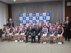 第57回マクドナルド全国ミニバスケットボール大会に出場する城東台フレンズミニバスケットボールクラブの選手・関係者が、大森雅夫岡山市長を表敬訪問しました。