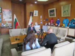 ブルガリア・プロヴディフのテレビ局「トラキア」の記者が、両市の交流についてのドキュメンタリー番組制作のため、大森雅夫岡山市長へインタビューを行いました。