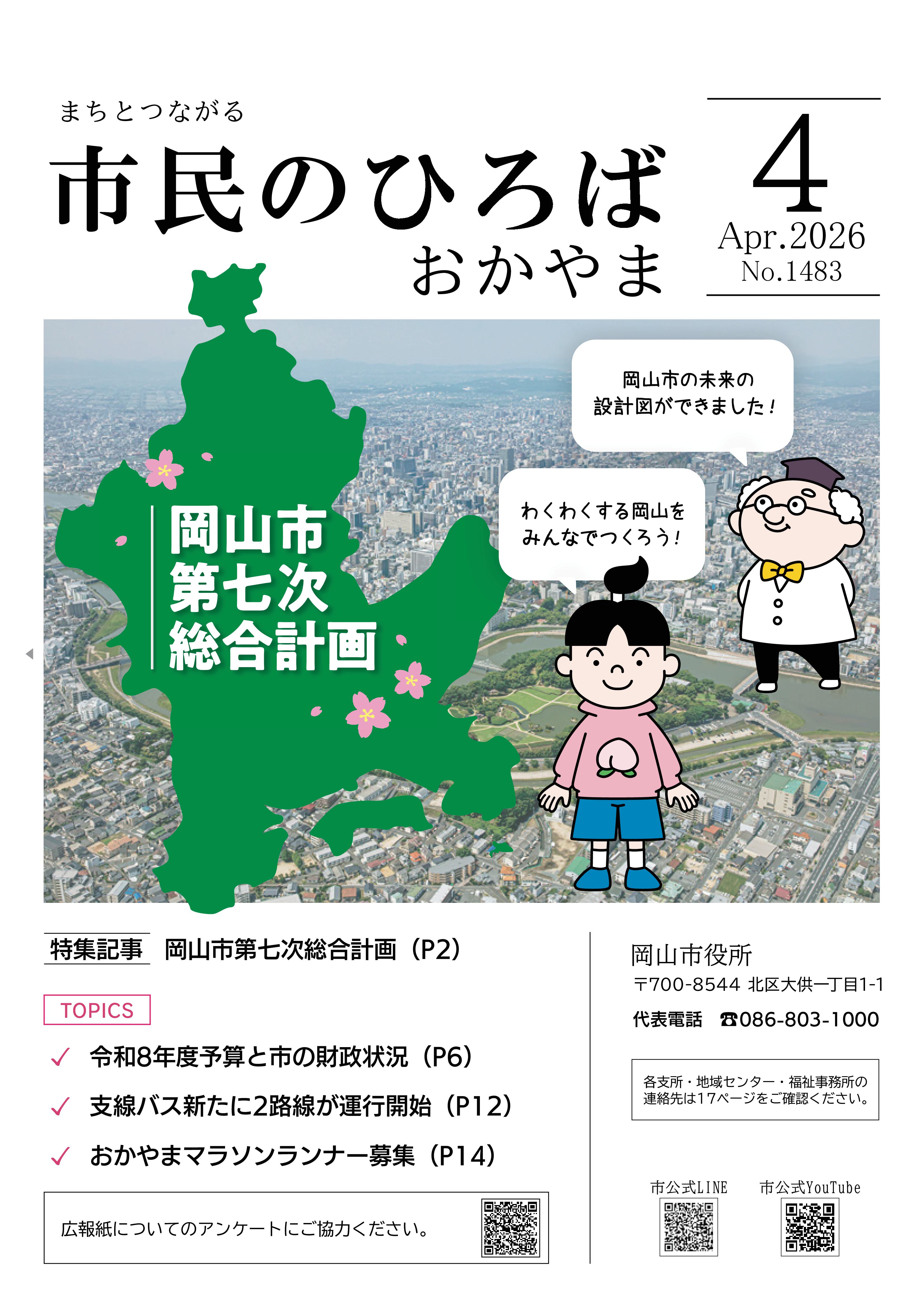 2026年3月2026年3月26日令和7年度「明るい選挙啓発ポスターコンクール作品展」を開催します(令和8年3月26日から4月1日まで)2026年3月26日【令和8年度】パートタイム給食調理員(岡山中央小学校)(5時間パート)の募集について【教職員課】2026年3月26日【令和8年度】パートタイム給食調理員(石井小学校)(5時間パート)の募集について【教職員課】2026年3月26日【令和8年度】パートタイム給食調理員(富山小学校)(5時間パート)の募集について【教職員課】2026年3月26日【令和8年度】パートタイム給食調理員(平井小学校)(5時間パート)の募集について【教職員課】2026年3月26日【令和8年度】給食調理員 4時間サポート(福島小学校)の募集について【教職員課】2026年3月25日岡山市長の大盛コラム(第17回)令和8年4月2026年3月25日「市民のひろばおかやま」2026年4月号 No.1483岡山市の広報紙「市民のひろばおかやま」2026年4月号を掲載しています2026年3月25日【現職教諭(小学校教諭等・中学校教諭等)の特別選考の実施要項を発表しました。2026年3月23日【募集終了】児童館業務【地域子育て支援課】